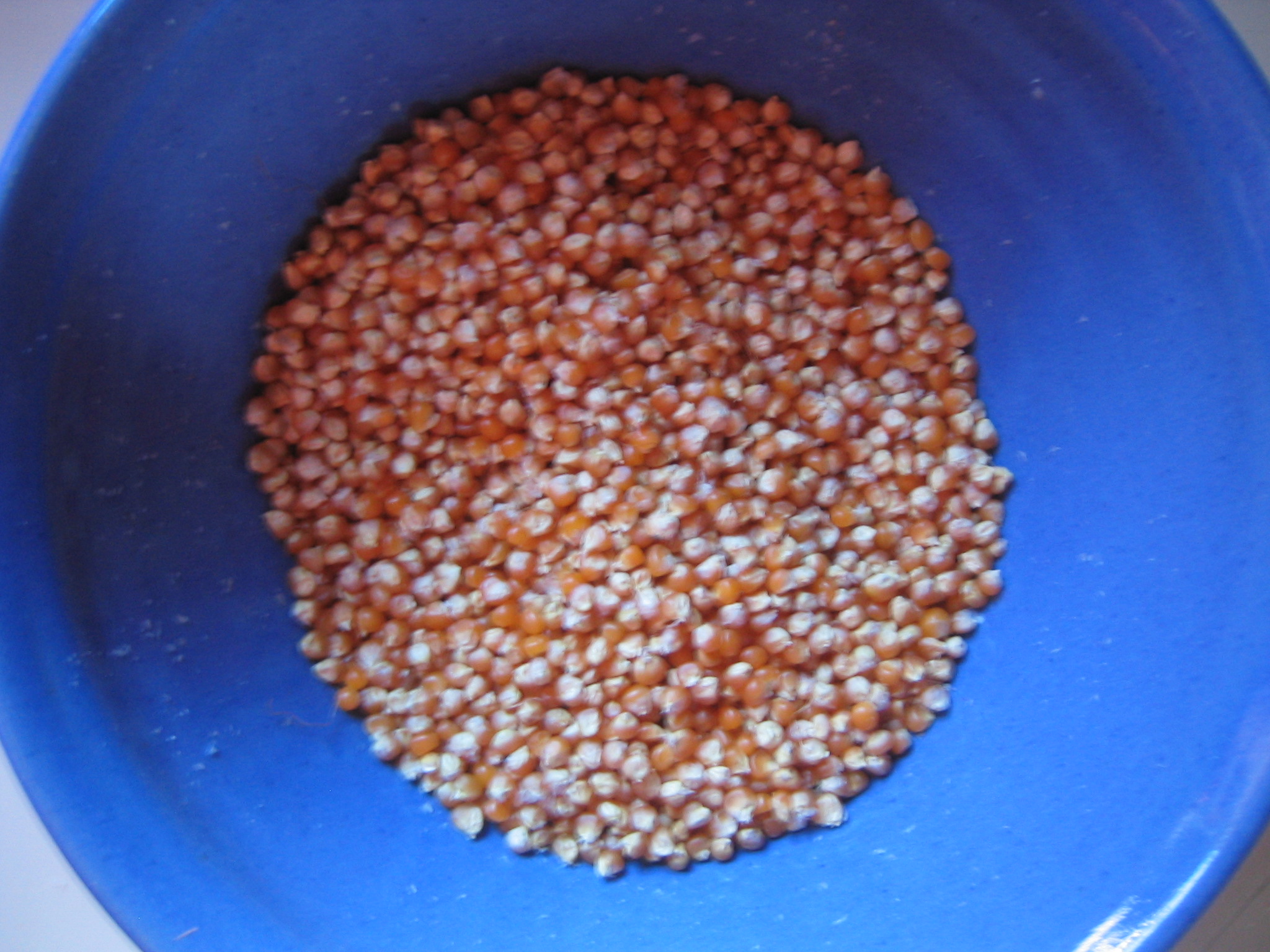 Back in June I planted some popcorn. I planted it later than I wanted but the turkeys, and then the crows, had pulled up all of the sweet corn. I was playing it safe. I hung some old CD’s to blow in the wind and that kept the fowl away. At the end of September (the 22nd) my daughter and I picked it and shucked it. It has been hanging to dry since then.