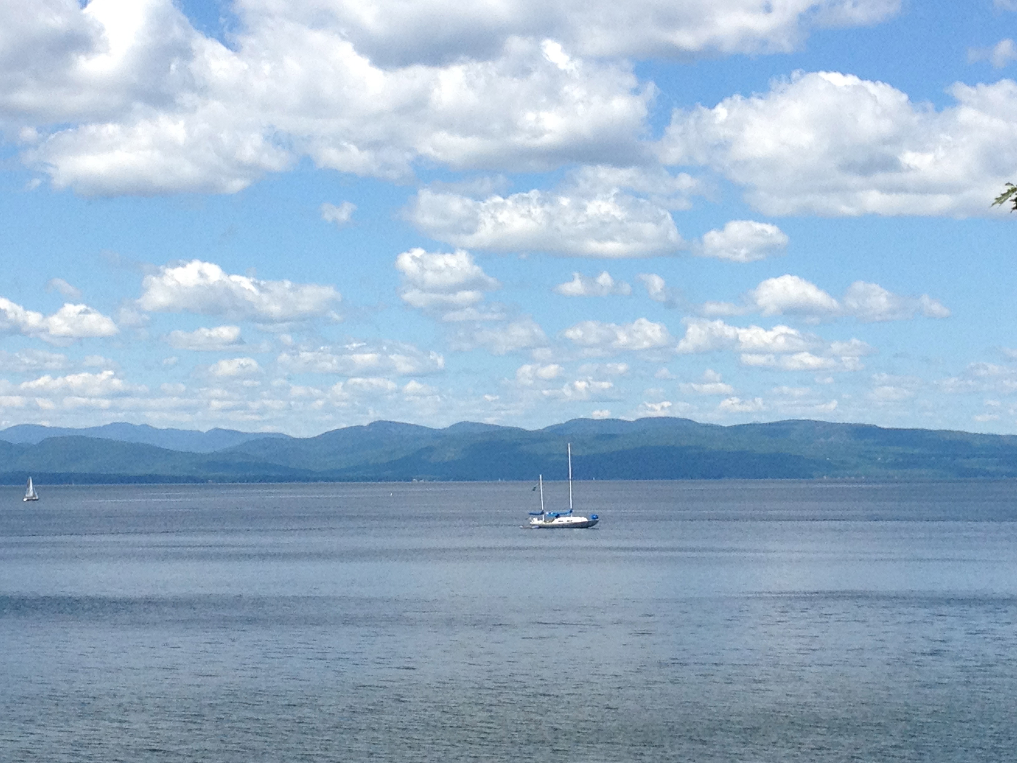 The kids and I walked our bikes down the sidewalk to the Ski Rack. The tube was replaced in no time and we were off to the bike path. We rode for a couple of hours, slowly making our way to Winooski. We turned around at the bridge over the Winooski River, which was a big hit with the kids. And, I have to admit, for myself, even though I had been there before. The river spilling into Lake Champlain, the water shining in the sun, the Adirondacks glowing in the distance–really, it was spectacular.