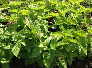 So last night we had beets for dinner. I had a small crop, thinking I would plant a second batch that hasn’t made it into the ground yet. They were fat and bright and red. I peeled them and sliced them thick and grilled them like I did that first time. I also grilled zucchini, several of which we got from our farm share this week. The topper was the pesto I made yesterday as well. Basil and cilantro is bursting so I cut lots of it. I also pulled a couple heads of garlic–the first from our garden this year. I whipped up a batch of traditional basil pesto and one with cilantro. I froze most of it and the rest dressed the grilled vegetables. It was dee-lish.