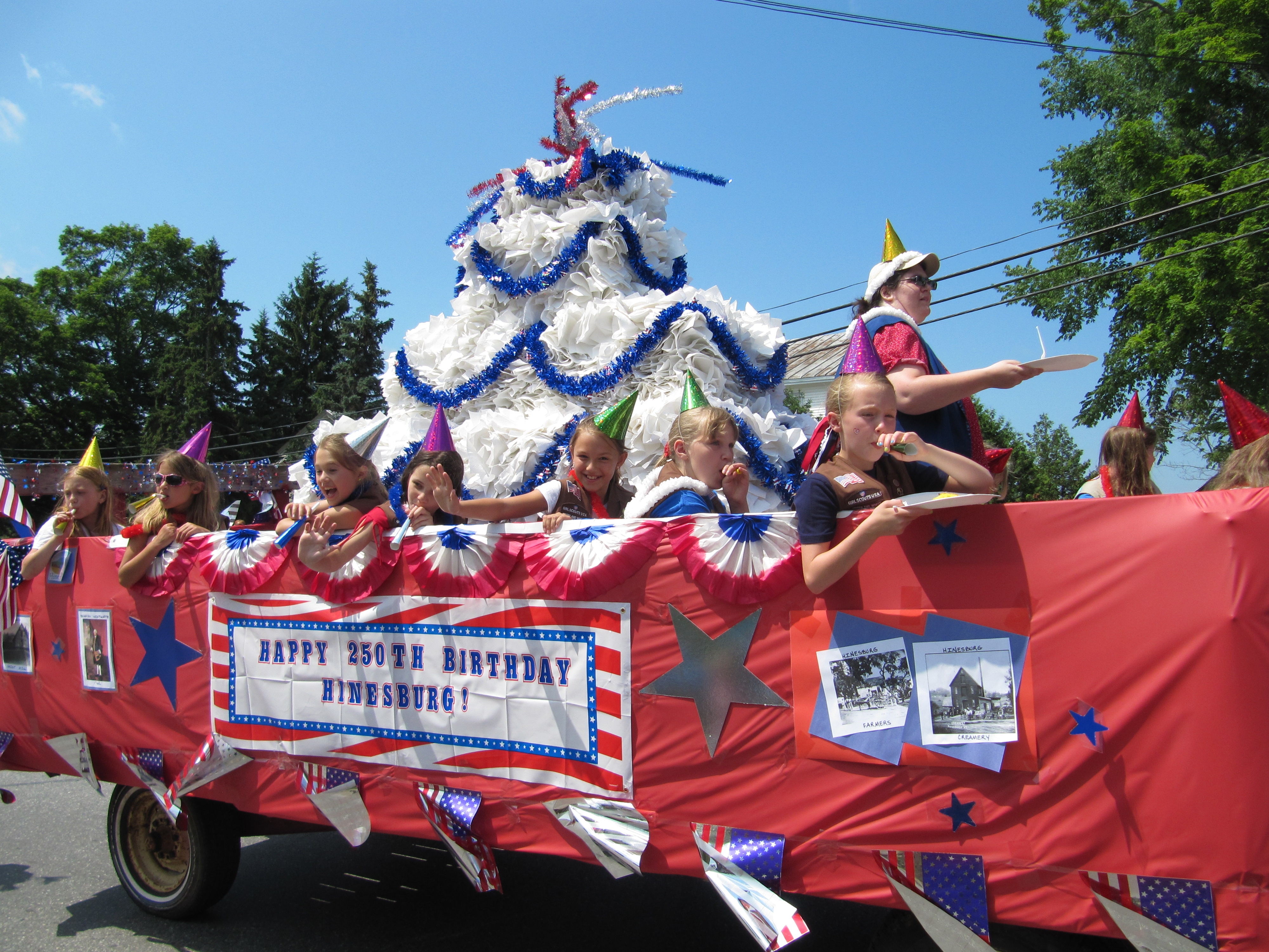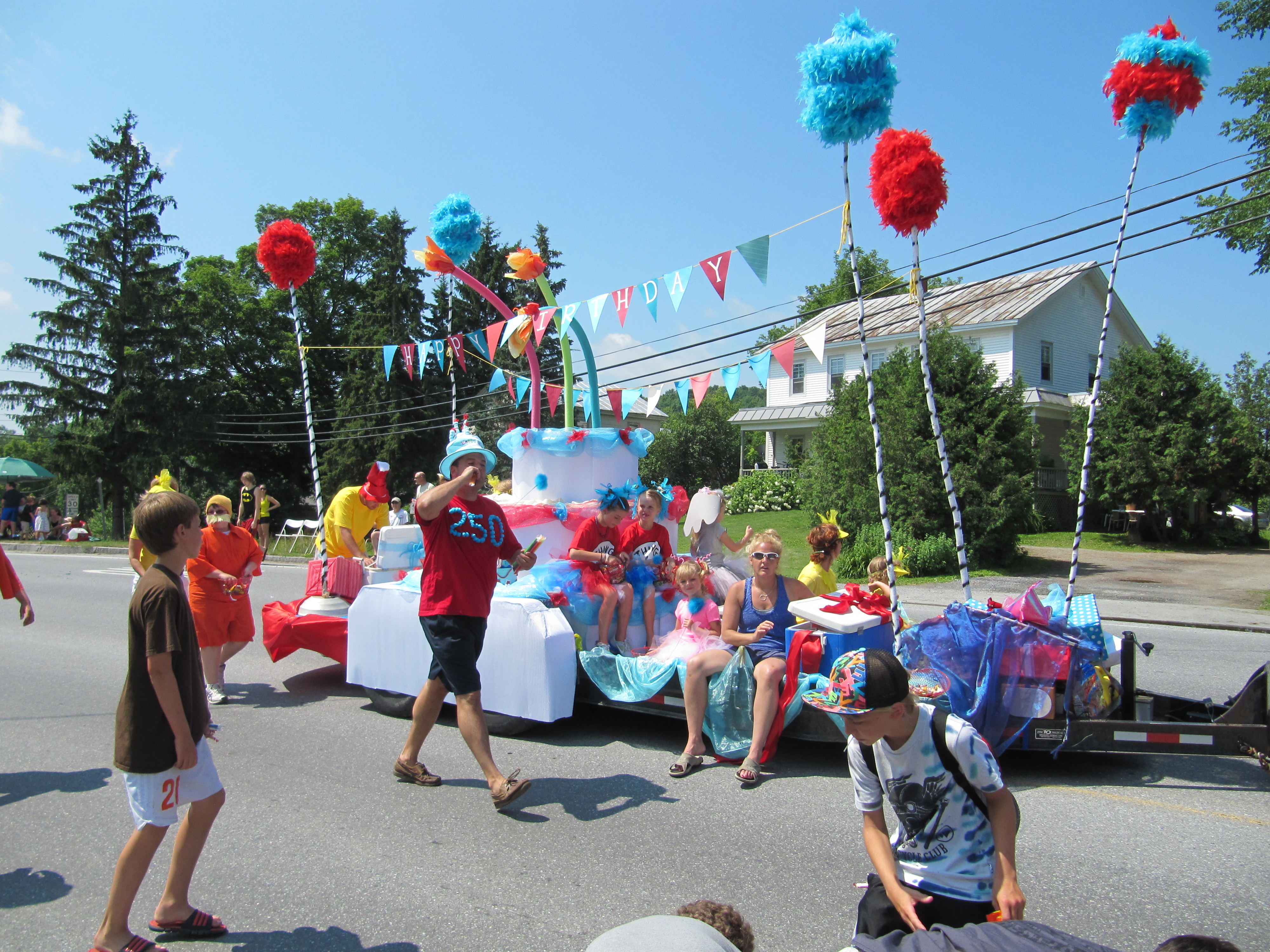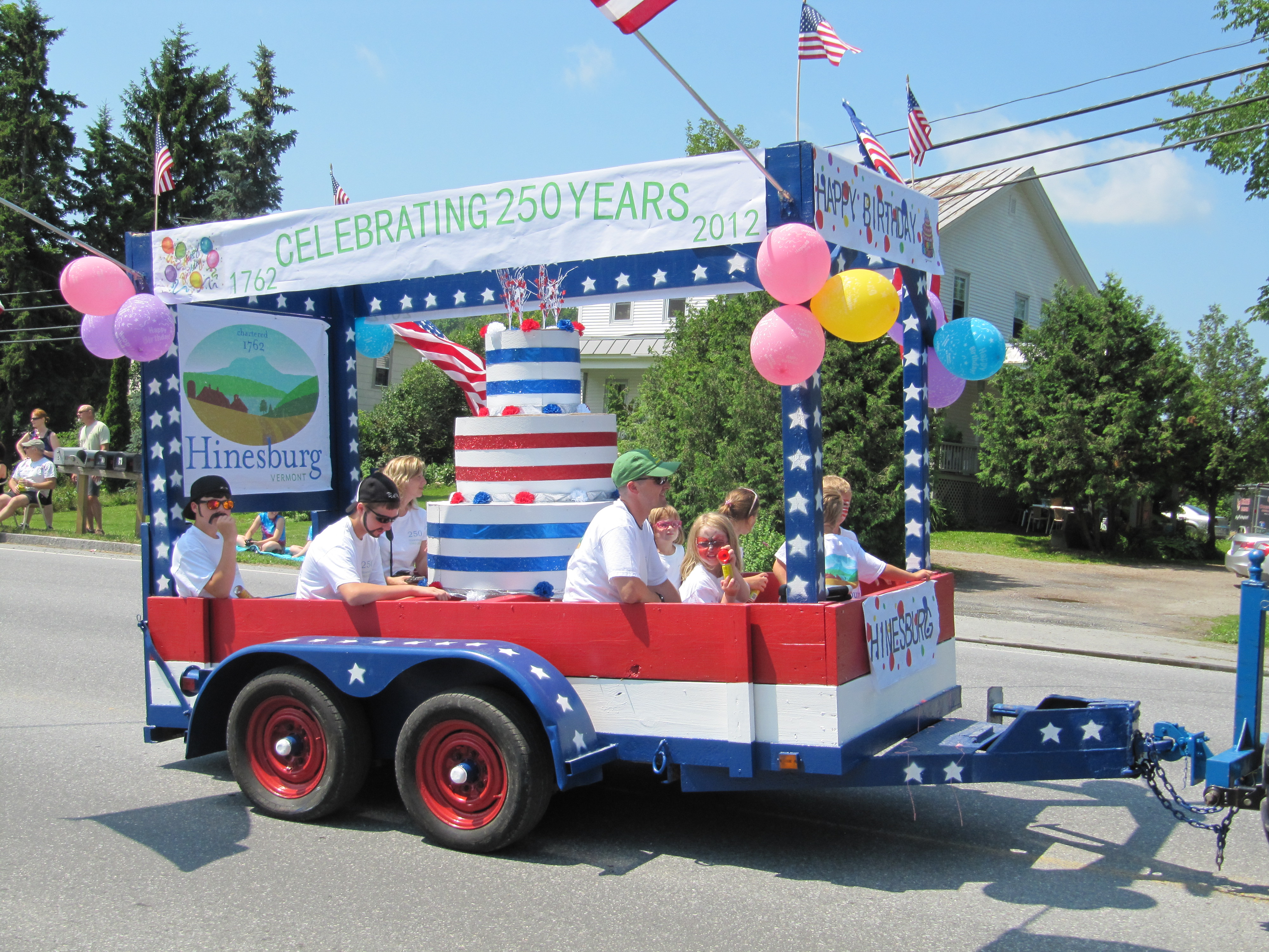 Hinesburg celebrates 250 years as a town this year, so our July 4th parade theme was Hinesburg’s birthday. Several people who made floats for the parade had the same idea–to create a giant cake. Here they are, with some bonus pics.