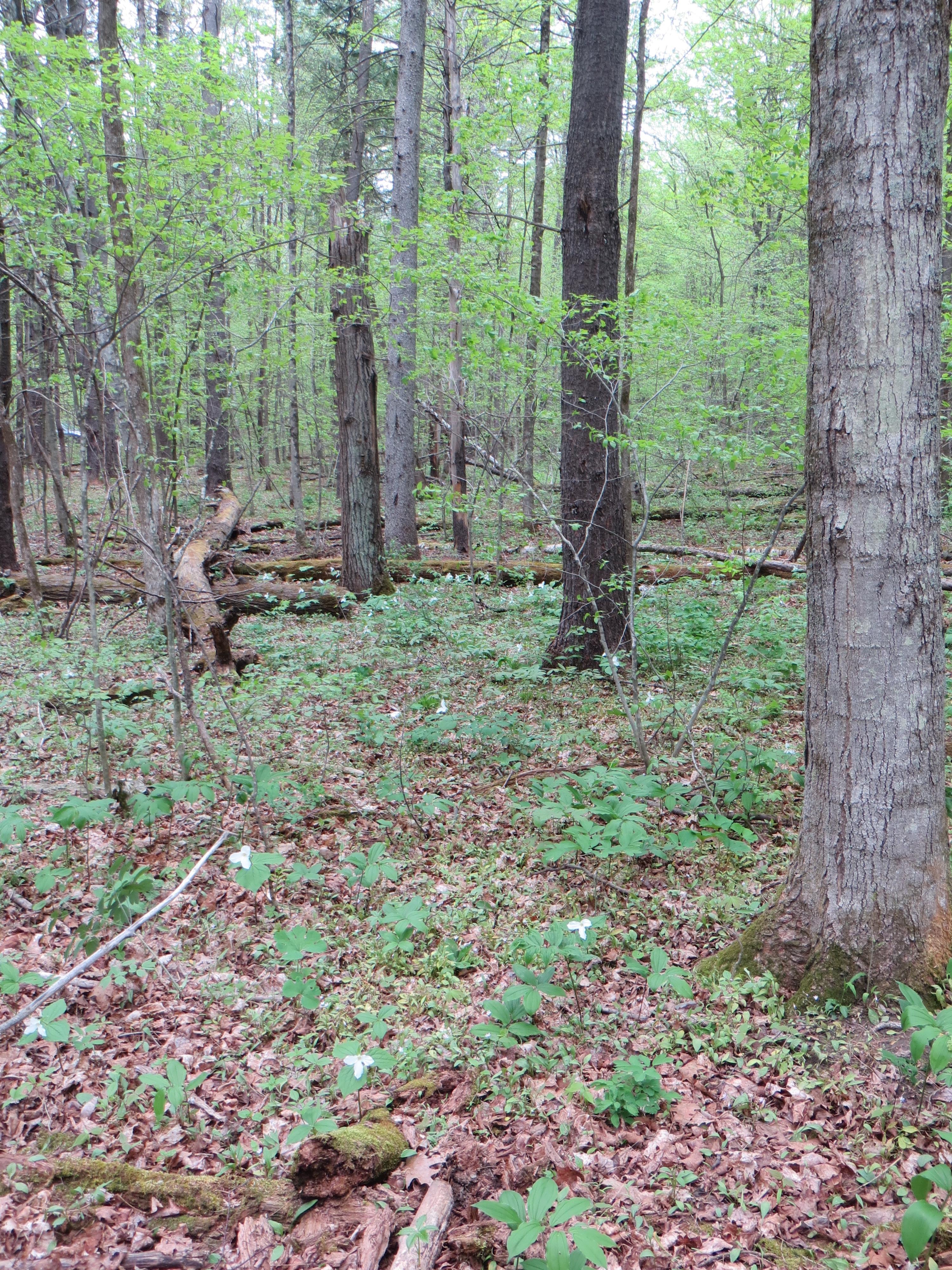 We saw some interesting stuff. The leaves are really popping out now. Trilliums were blooming in huge clusters. Columbine, apple blossoms, Solomon’s seal all busting out their stuff. We heard and saw a Chestnut-Side Warbler, Ovenbirds, lots of Robins doing their best to attract the ladies. The sun was shining and it was cool but not cold, warm but not hot. Couldn’t be nicer.