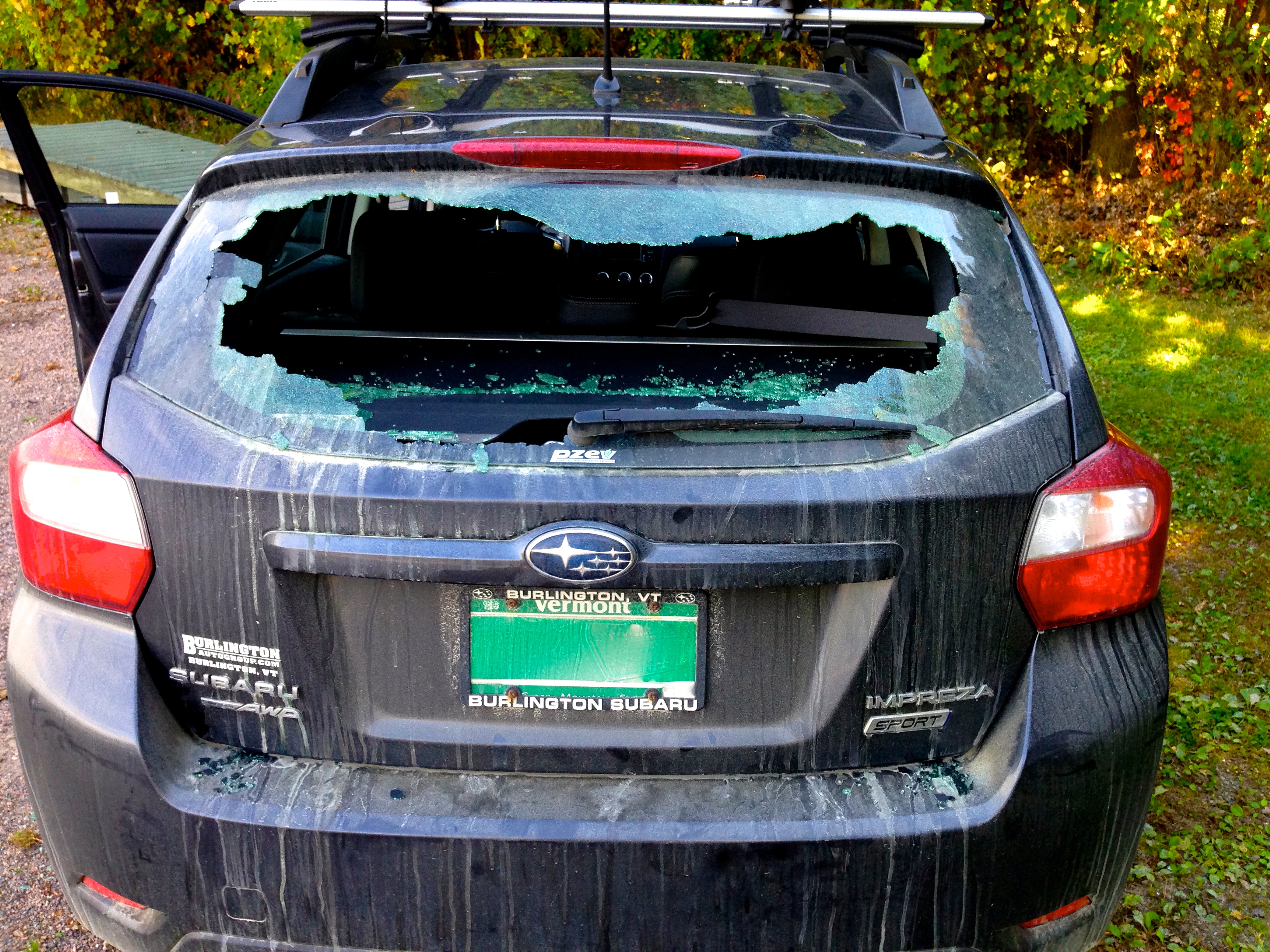 So I got to call 911 again. I reached a New York responder, got connected to a Vermont responder, then to the local police. I gave my information and waited for someone to show up. I wasn’t freaked out or frightened or even angry. I just felt tired. I knew it would take a good chunk of time to deal with this, many phone calls to start with, then running around to deal with replacing stuff and fixing the busted window and trying to keep this from getting worse. So I started calling.