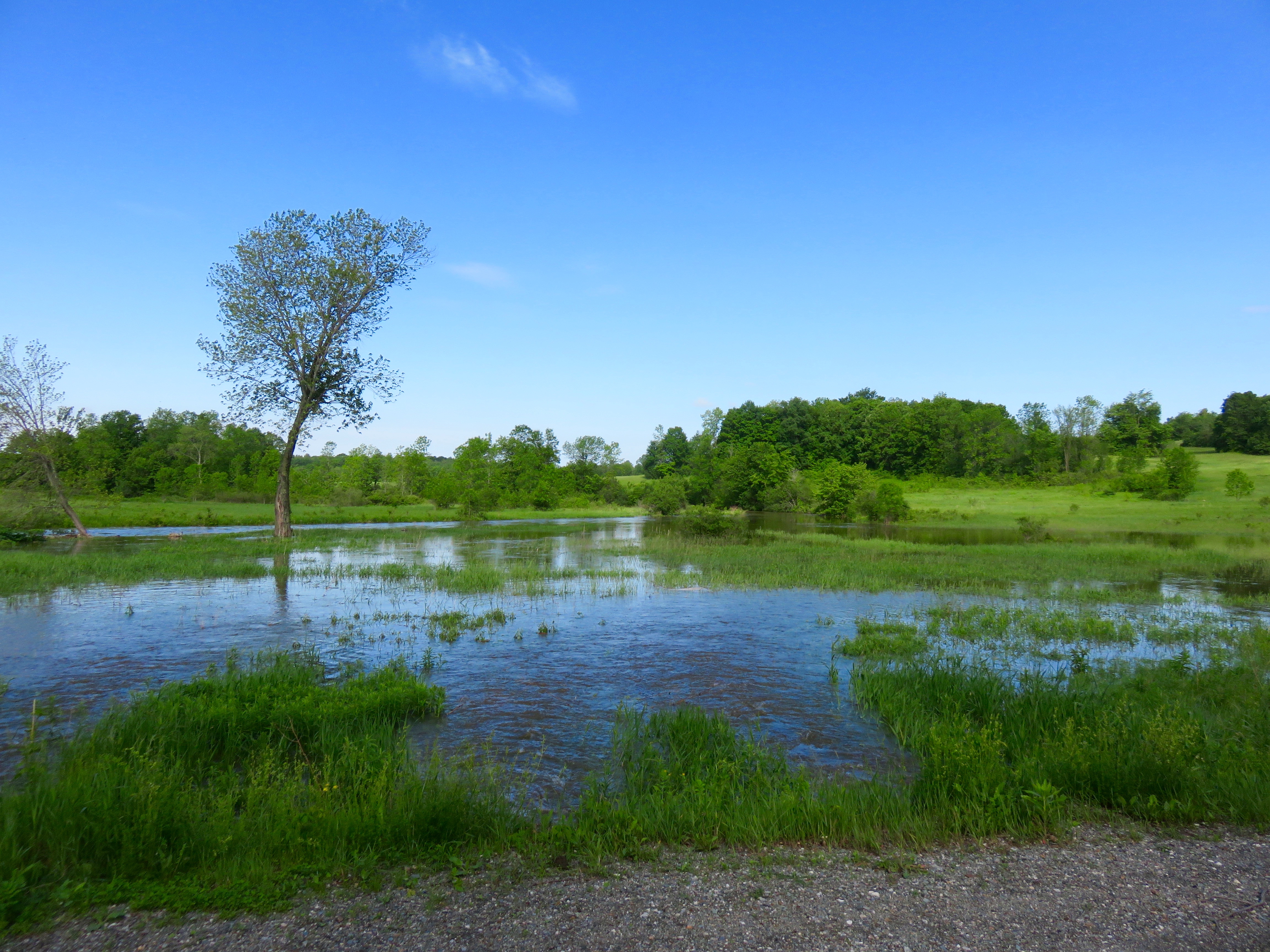 Yesterday morning I visited the Catamount Outdoor Family Center in Williston to go birding. This was part of a bird walk sponsored by Green Mountain Audubon. There were quite a few people there, maybe 20 or so. I meant to count the people but I was too focused on counting birds. We walked the trails for over two hours and, despite the hundreds of mosquitoes, found 45 species of birds. Two highlights were the flock of Blue Jays mobbing a Barred Owl and a Red-Winged Blackbird chasing a Green Heron. We also heard, however, a Brown Creeper, a shy bird who looks like tree bark and whose song is high and hard to hear. Finding that bird means really paying attention so it is rewarding to discover it.