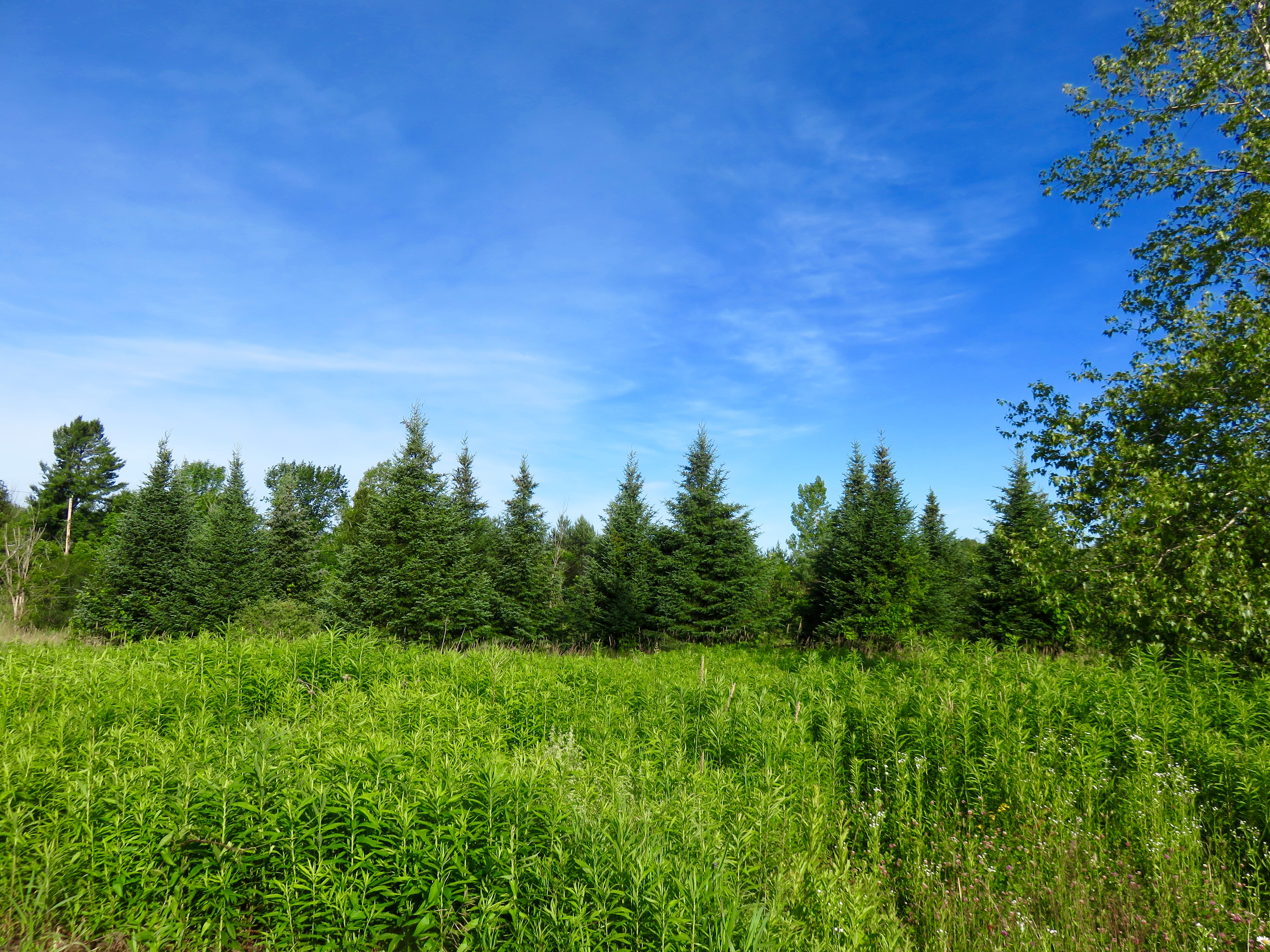 The photo above has a Cedar Waxwing in it. It is perched at the top of a fir. It is hard to see, but I heard its high trilling song, then narrowed down its location and saw it well with binoculars. Birding is not about seeing the birds that make themselves obvious. It is about seeking out the birds that are there, finding them even when they are not obvious. That is the therapy for me in birding.
