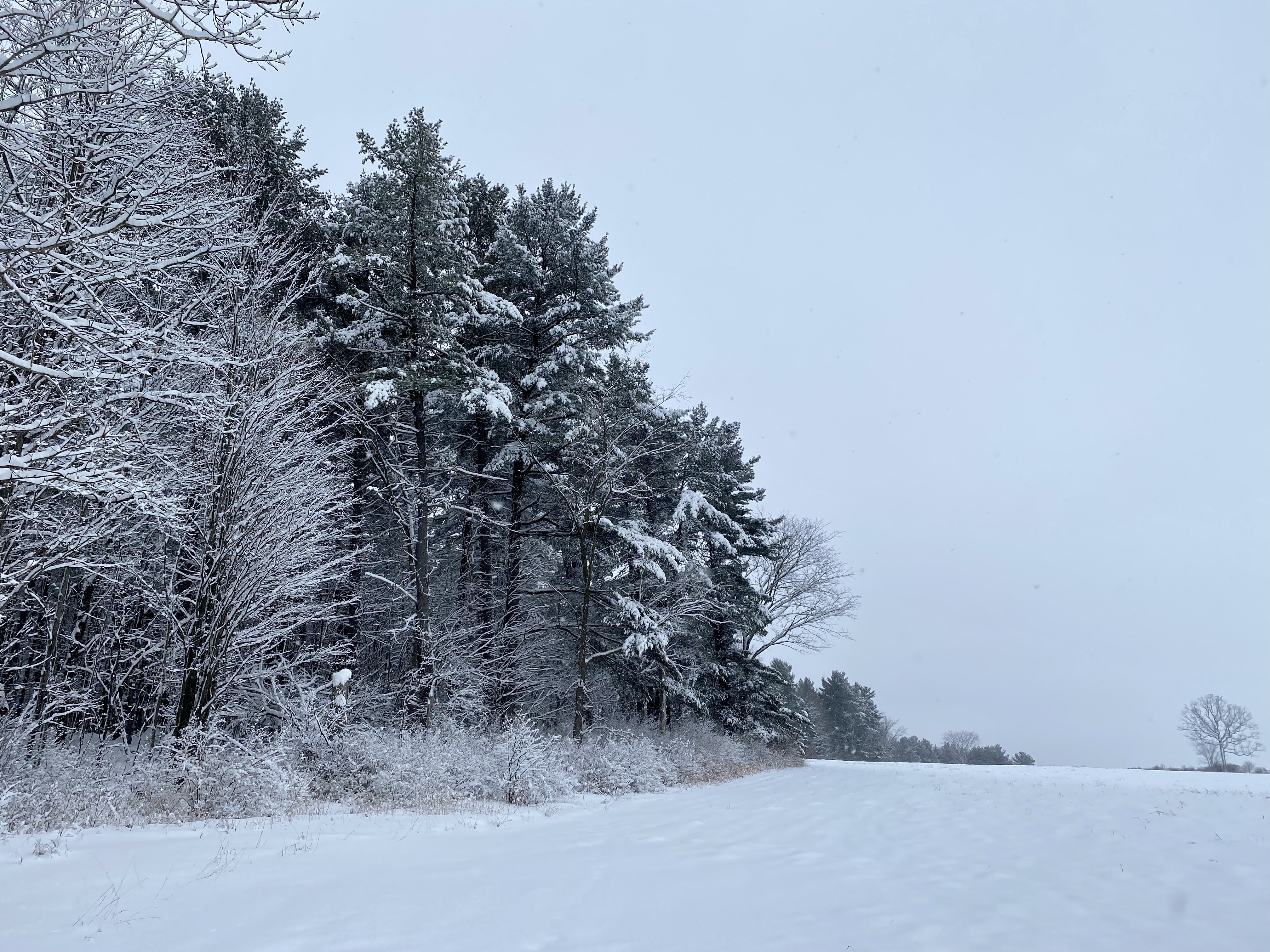 The sun has set now. It is dark and the string lights on the porch railing and posts glow with their coating of snow. It snowed all day. The forecast called for snow tapering off by early afternoon, with total accumulation of up to three inches. They upped that estimated total amount to six inches by early afternoon. We got about a foot of snow by the time is stopped as the light faded.