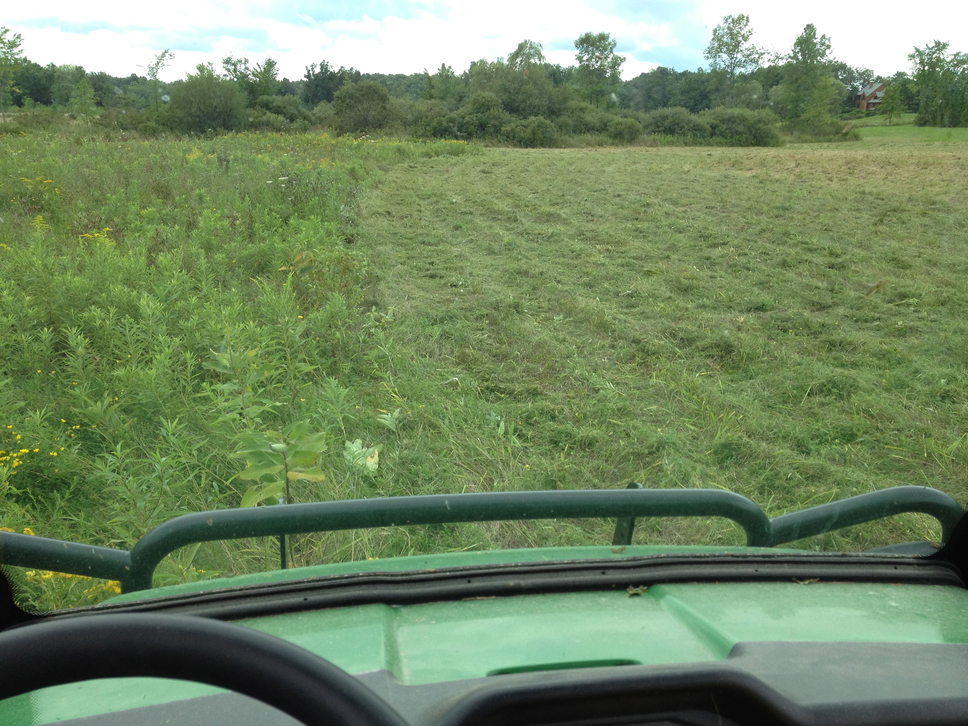 In the past we have postponed our mowing due to the weather. The field was too wet or it rained when we had the time to cut. Or we didn’t have a tractor with a brush hog when we needed it. We were hoping this would take care of at least the latter issue. And it did, sort of. I started near the end of July. This was perfect. We needed to wait until at least mid-July so that any birds nesting in the field would have fledged. Bobolinks and red-winged blackbirds are ground nesters and we wanted to make sure they didn’t get chopped up in the blades. That is just bad juju. Also, part of the reason we are cutting all this vegetation is the wild parsnip–the stuff has taken over and we wanted to cut it down before it went to seed. That started off well.