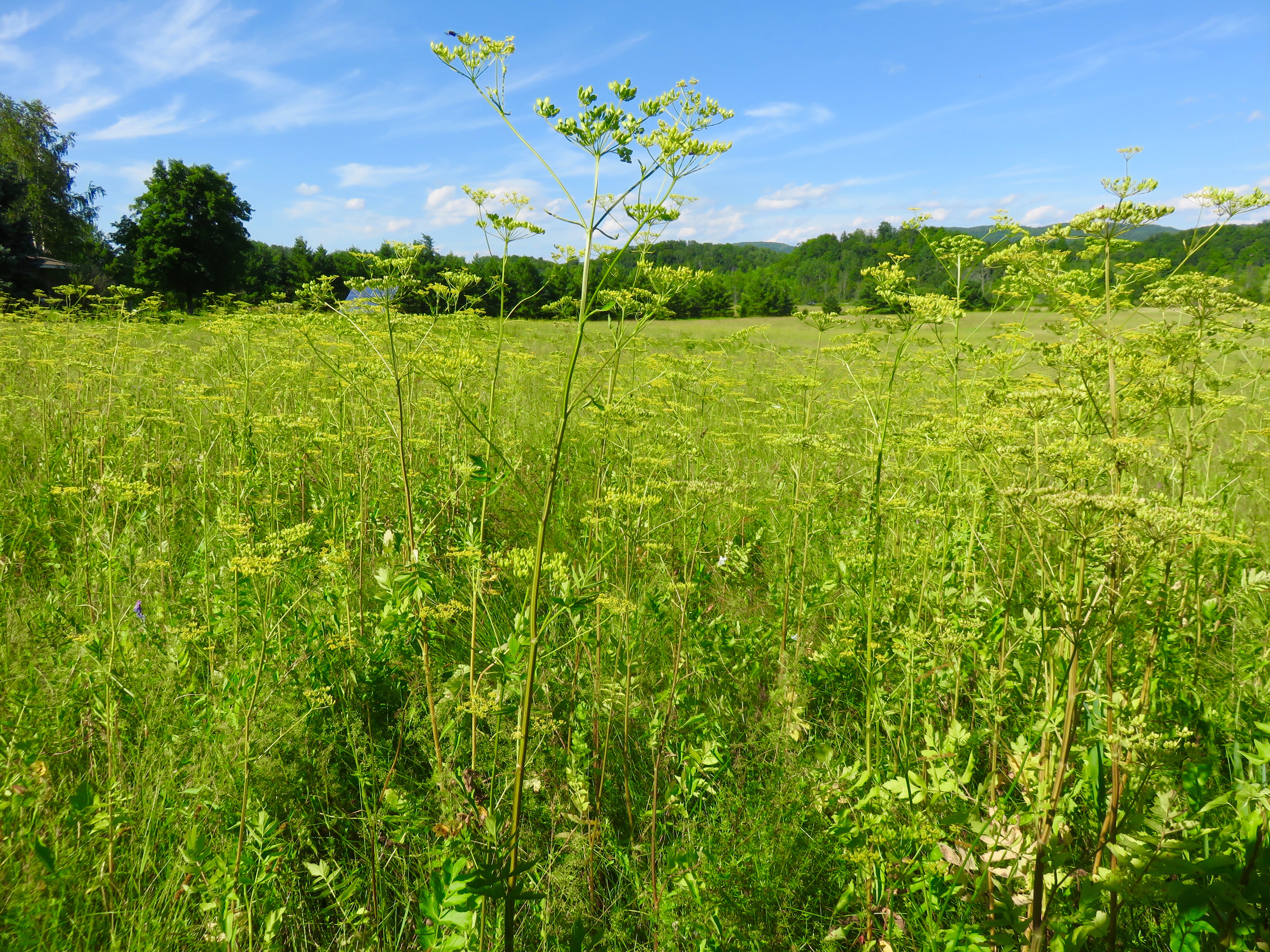 There are fields where wild parsnip has simply taken over. The plants can get to be super tall–eight feet sometimes–and they will push out native plants. I have seen fields where it is the only plant visible. If those fields eventually grow up into woods the wild parsnip will disappear, but in sunny fields it is a bully. Moreover, the plant is toxic. The oil from the plant can rub off and, when exposed to sunlight, can cause chemical burns. Photoreactive is the word. In short, we wanted to make sure it does not live in our field.
