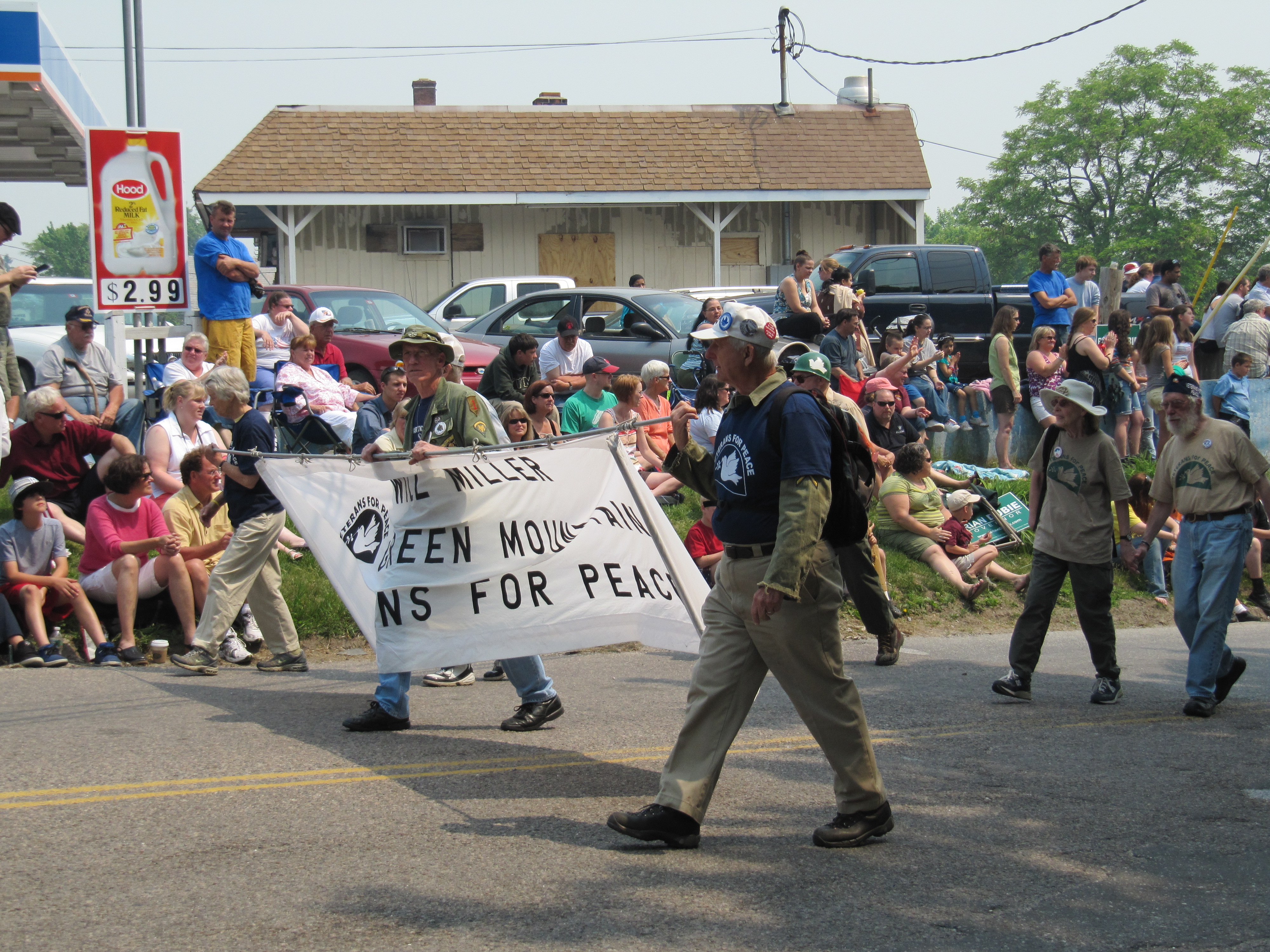 The photo above is from the Memorial Day parade in Vergennes last Monday. That right there is Bernie Sanders. He is wearing a regular jacket; I swear he wore that in the last parade in which I saw him, and I missed this same parade last May. He is wearing running shoes. His baseball cap is in hand, his hair the usual muss. Even his pants are not ironed. That is just the thing here–he is tidy enough and respectful, but in no way pretentious. He does not pretend to be someone he is not. He dons the suit and tie when appropriate but here, where he stops to hug his constituents and to take photos with those who ask, he wears something comfortable. He cares more about wealth inequality than he cares about the Windsor knot.