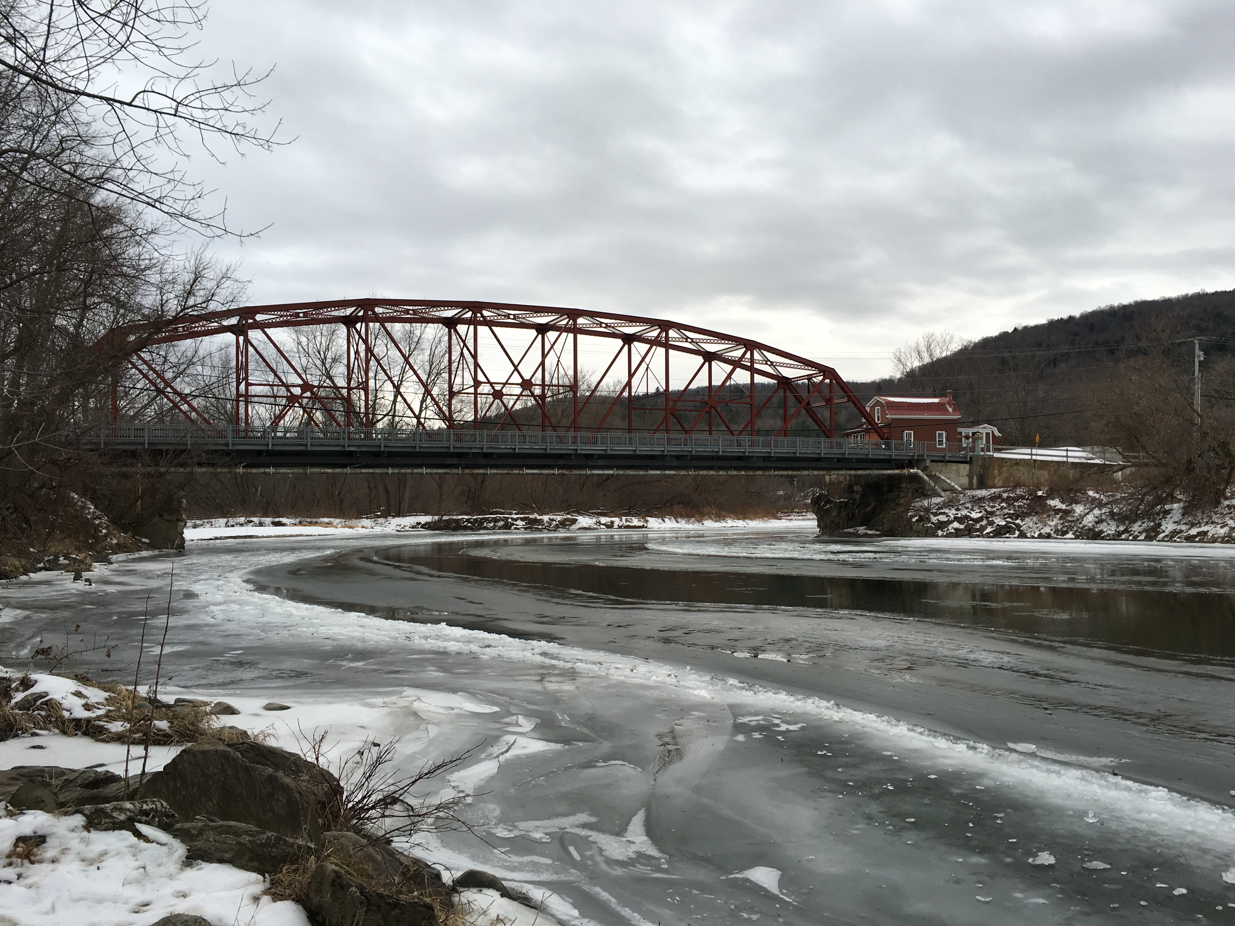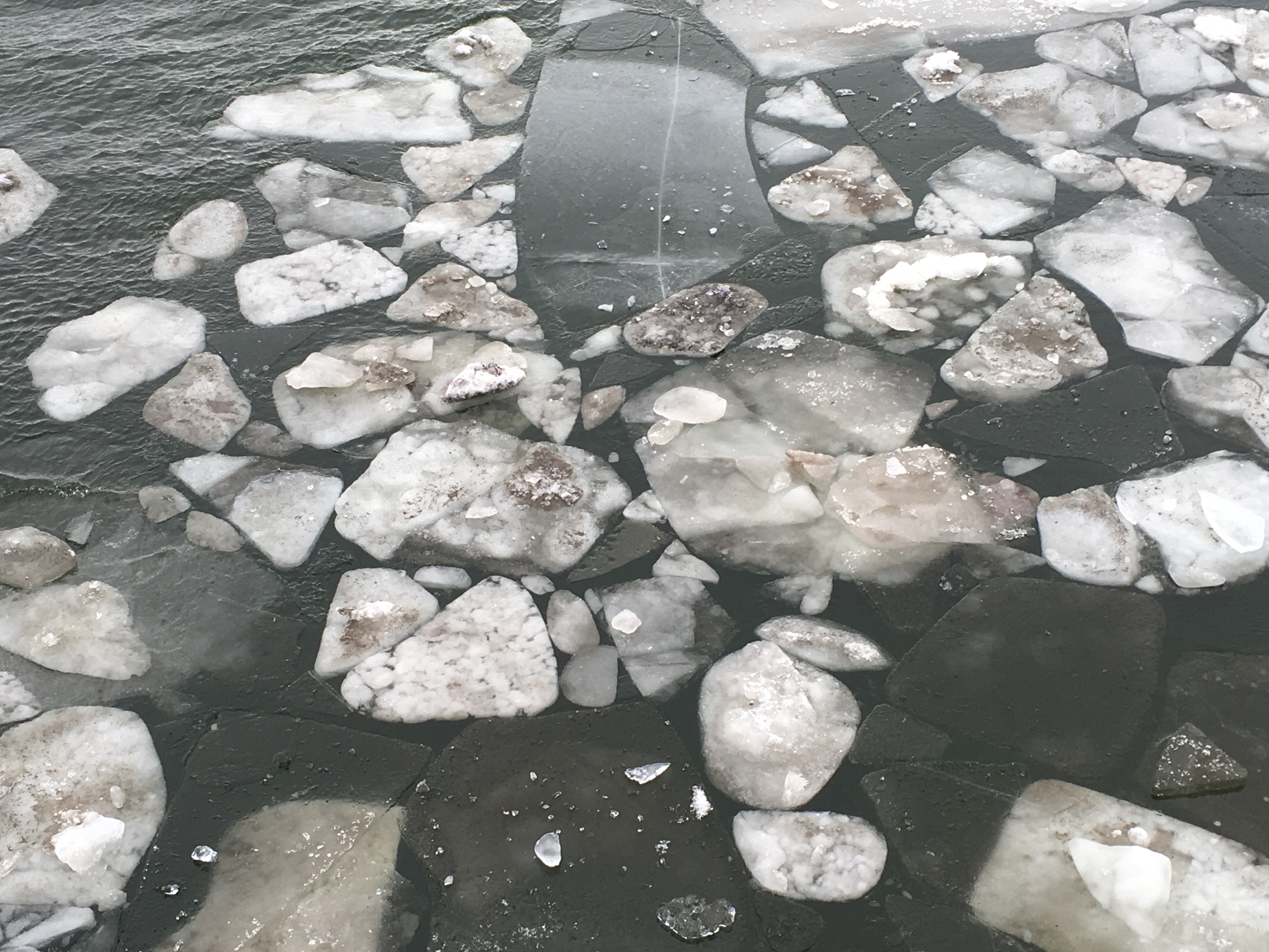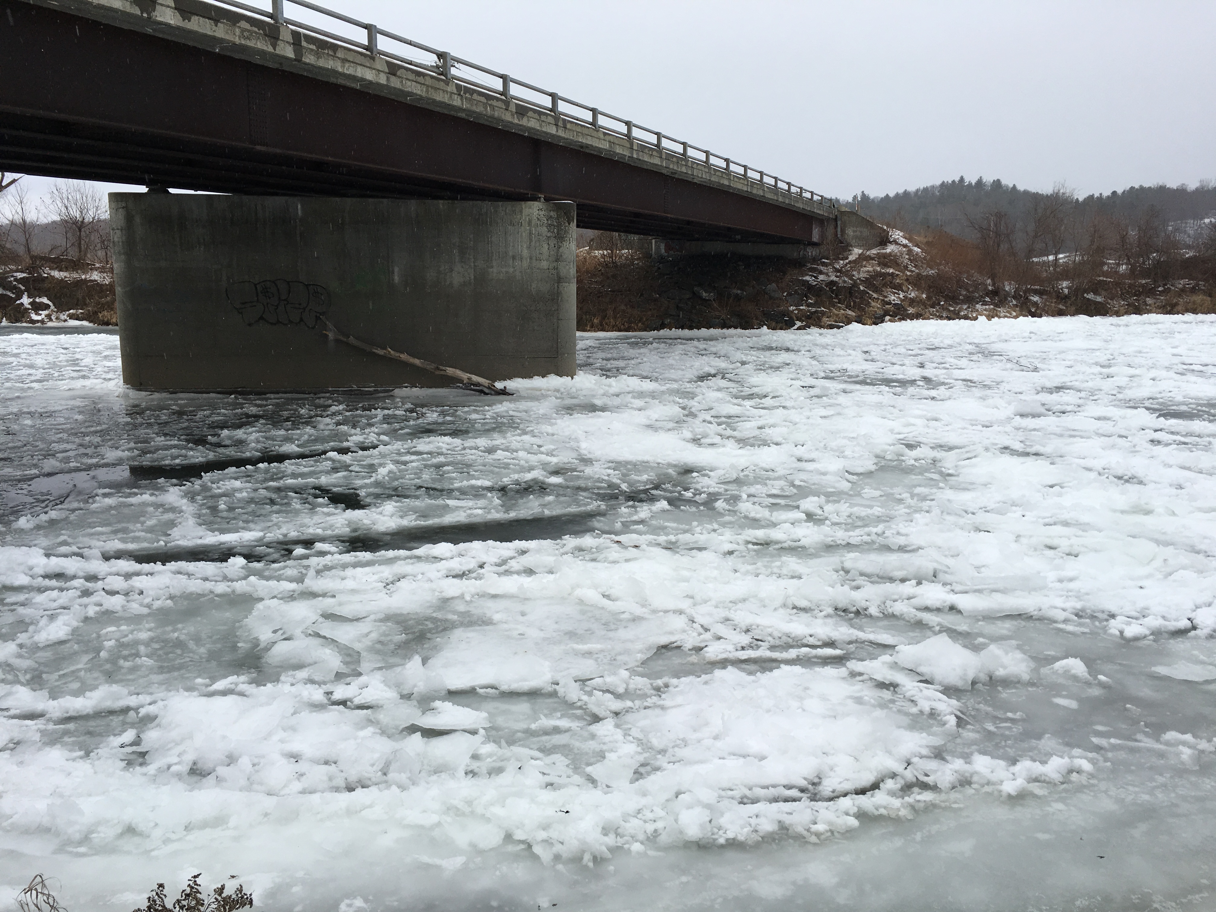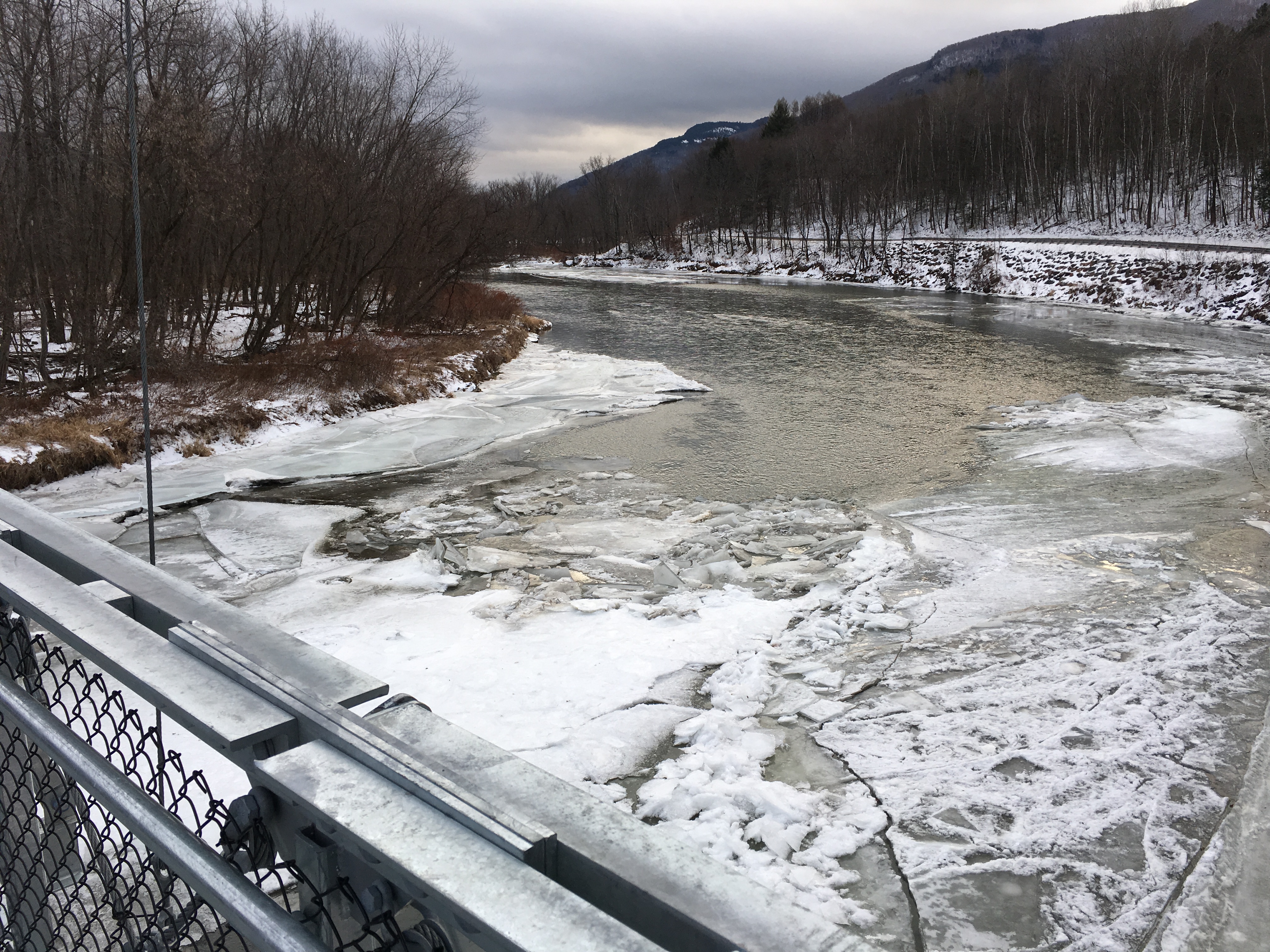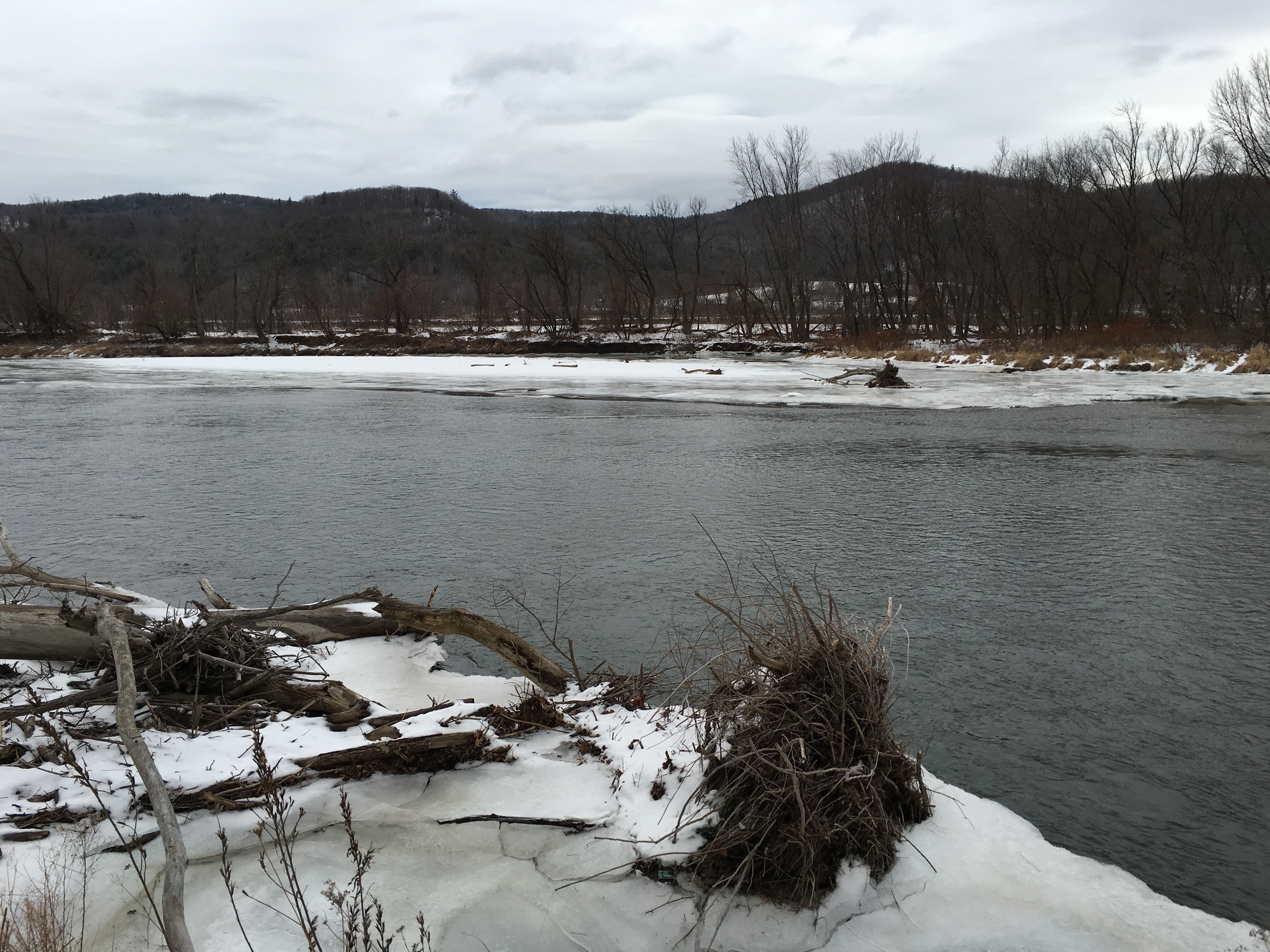 The Winooski River is still in winter mode, but thawed a little today